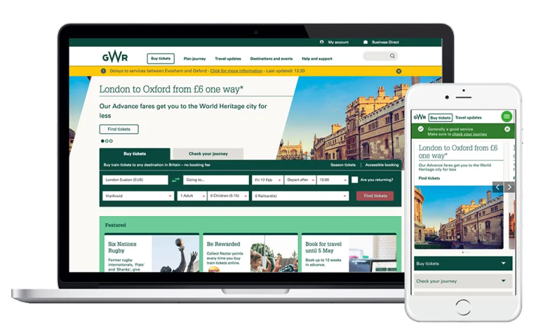 Designing and building a new website and booking flow: We delivered GWR.com, giving customers frictionless ticket purchasing on all devices, clear real-time travel information, and content which inspires users to explore the West